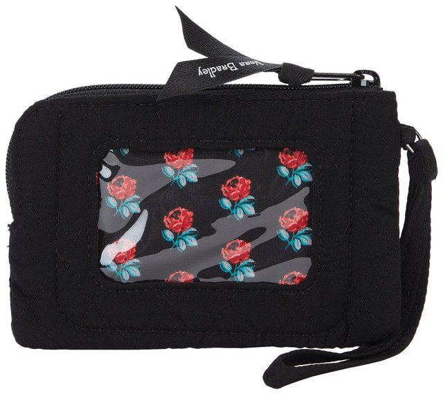 Own your day with this compact 5.5 x 4 Vera Bradley wristlet wallet. It fits your essentials without the bulk and keeps your ID front and center for fast access. The zippered main compartment locks down your cards and cash so you move with confidence. Stylish, secure, and built for hustle.