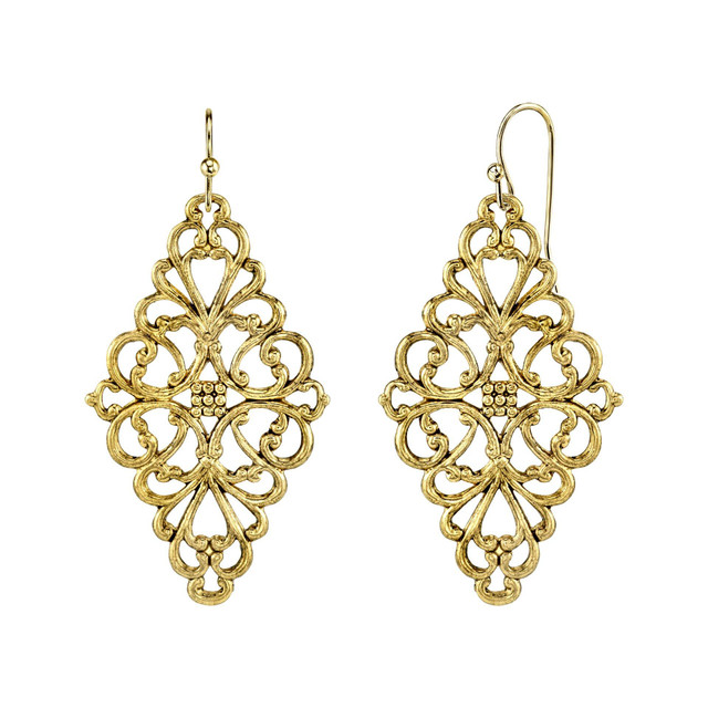 Enhance your style with our diamond-shaped drop earrings featuring intricate filigree detail. These versatile and delicate earrings are perfect for any occasion, whether you're attending a wedding or just wearing your favorite jeans. Their stylish design ensures you'll look elegant day or night. Elevate your accessory collection with these timeless pieces. Length 1 in., width 25mm.