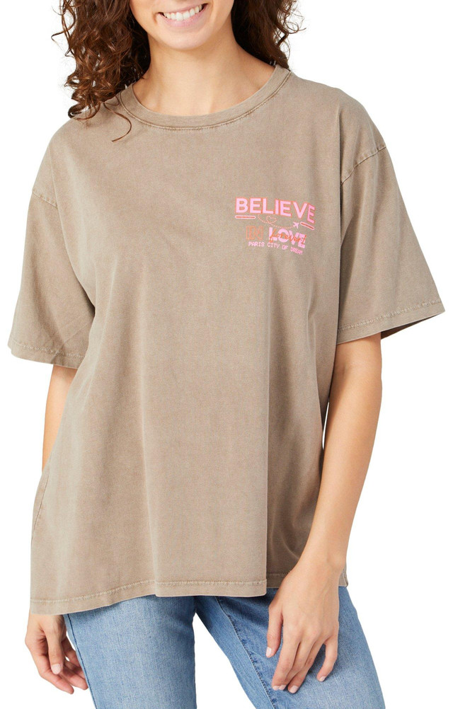 Introducing the Juniors Believe In Love T-Shirt, crafted from 100% cotton for a soft and comfortable feel. This stylish t-shirt features a Believe In Love script and a map-themed graphic design, adding a touch of inspiration and adventure to your casual wardrobe. Perfect for everyday wear, this t-shirt combines fashion and meaningful messaging seamlessly, making it a unique and eye-catching piece.