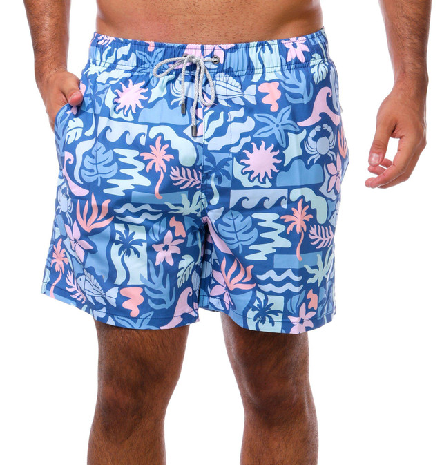 These volley shorts feature a tropical inspired graphic print with 4 way stretch for maximum flexibility and comfort. Made from a smooth blend of polyester and spandex, they are perfect for active days by the water or casual summer outings.