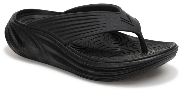 Vionic Tide RX Unisex Recovery Thong Sandals are ideal for anyone looking to enhance their recovery routine or simply enjoy superior comfort in their everyday life. It features a soft footbed for superior impact absorption and a firmer outsole for optimal balance and support. The result is a sandal that not only cushions but also returns energy to your feet, helping reduce fatigue and enhance recovery. Molded EVA footbed with oversized sidewall and deep heel cup ensures exceptionl arch support.