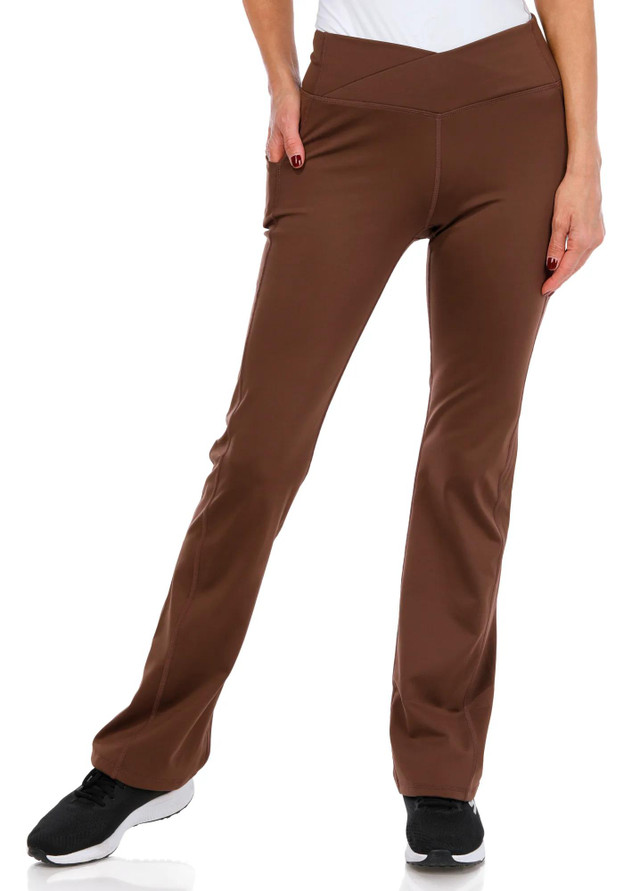 Enhance everyday movement with the Pocket Bootcut Pants. The stretchy design offers smooth flexible comfort while the bootcut silhouette creates a flattering balanced look. Convenient pockets keep essentials close making these pants perfect for workouts errands or relaxed casual style. Fabrication is 86% polyester and 14% spandex.