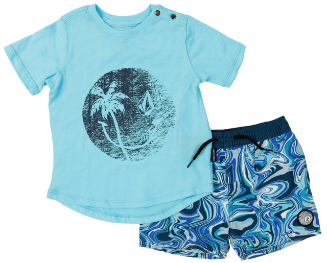 Ready for splashy fun, this 2-piece set pairs mesh-lined swim trunks with a cool graphic tee for the ultimate beach or poolside look. The breathable trunks offer comfort and quick-dry ease, while the tee adds playful style and sun-smart coverage. Perfect for water adventures and sunny day play!