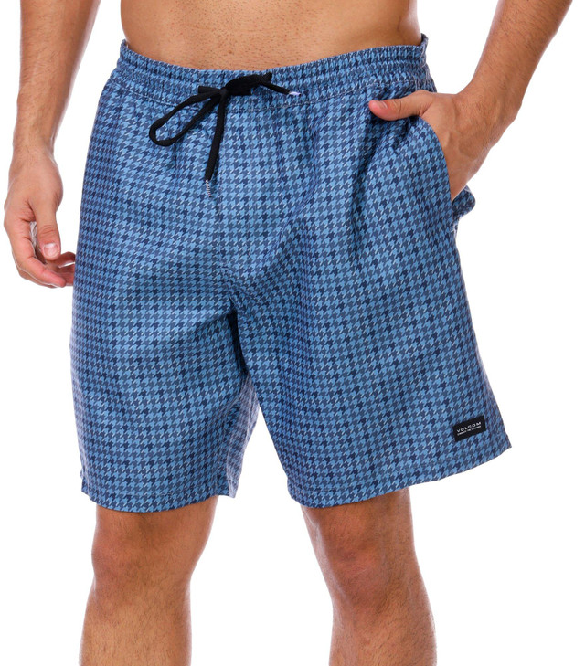 Make a bold statement with the Men's Houndstooth 8 in Shorts. Featuring stylish houndstooth patterns, these trunks are crafted from quick-dry fabric, elastic waistband, and secure drawstring for all-day comfort and coverage no matter the occassion. Inseam measures approximately 8 in. Fabrication is 100% polyester.