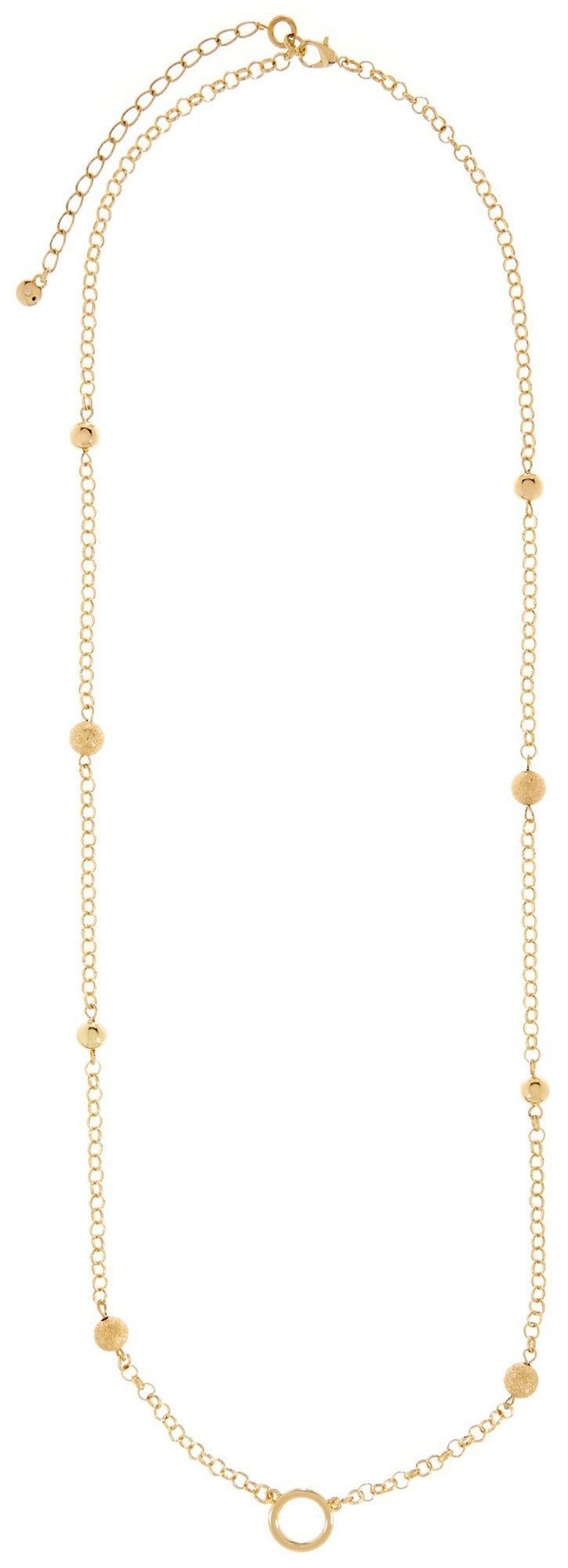 This necklace features a gold tone chain link design with stationed balls & a front ring for your pendant. Wear this necklace with one of your favorite pendants.