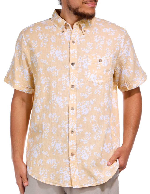 Introducing this Buttoned Short Sleeve Shirt, a perfect blend of style and comfort. Crafted from a soft linen blend, this shirt features a stylish pattern that adds a touch of sophistication. The buttoned front and chest pocket provide classic detailing, making it ideal for both casual and semi-formal occasions. Fabrication is 55% linen, 45% cotton.