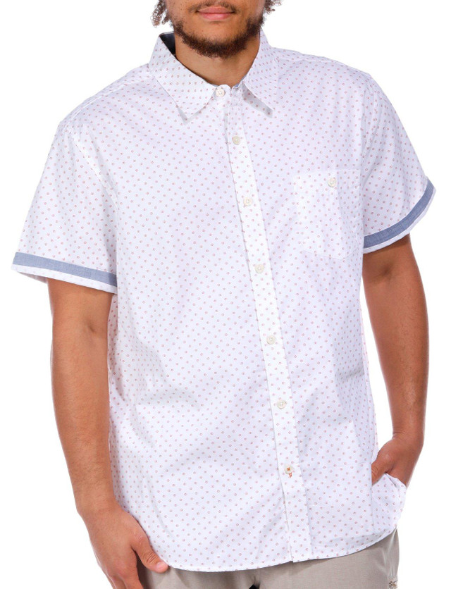 Introducing the Short Sleeve Cotton Poplin Shirt, a stylish and versatile addition to your wardrobe. Featuring a unique print pattern, this shirt is crafted from soft cotton poplin for ultimate comfort. The buttoned front and chest pocket add classic detailing, making it perfect for both casual and semi-formal occasions.