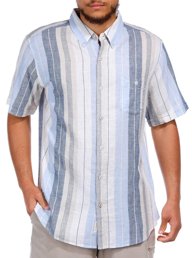 Introducing this Buttoned Short Sleeve Shirt, a perfect blend of style and comfort. Crafted from a soft linen blend, this shirt features a textured pattern that adds a touch of sophistication. The buttoned front and chest pocket provide classic detailing, making it ideal for both casual and semi-formal occasions. Fabrication is 55% linen, 45% cotton.