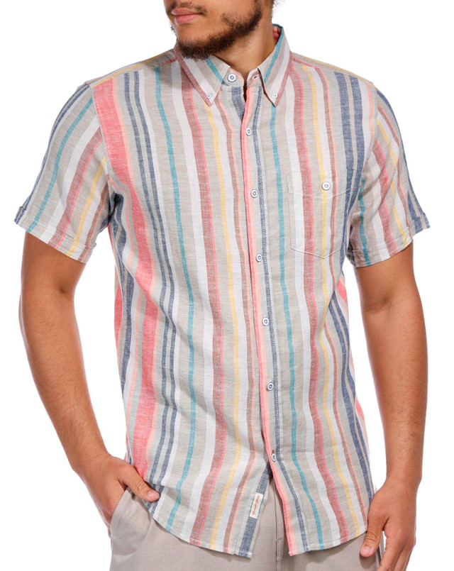 Introducing this Buttoned Short Sleeve Shirt, a perfect blend of style and comfort. Crafted from a soft linen blend, this shirt features a textured pattern that adds a touch of sophistication. The buttoned front and chest pocket provide classic detailing, making it ideal for both casual and semi-formal occasions. Fabrication is 55% linen, 45% cotton.