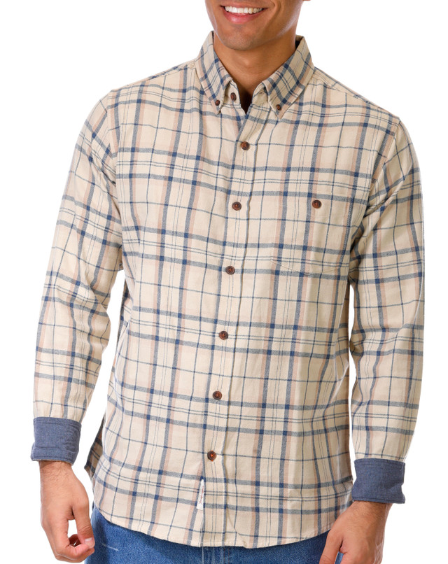 Stay comfortable and classic with this Mens Long Sleeve Plaid Flannel Shirt which features a soft plaid flannel design, a full button front, and a handy chest pocket for everyday practicality. Perfect for layering or wearing on its own, it delivers easy warmth and timeless style. Fabrication is 60% cotton 40% polyester. Length measures approximately 32 in.