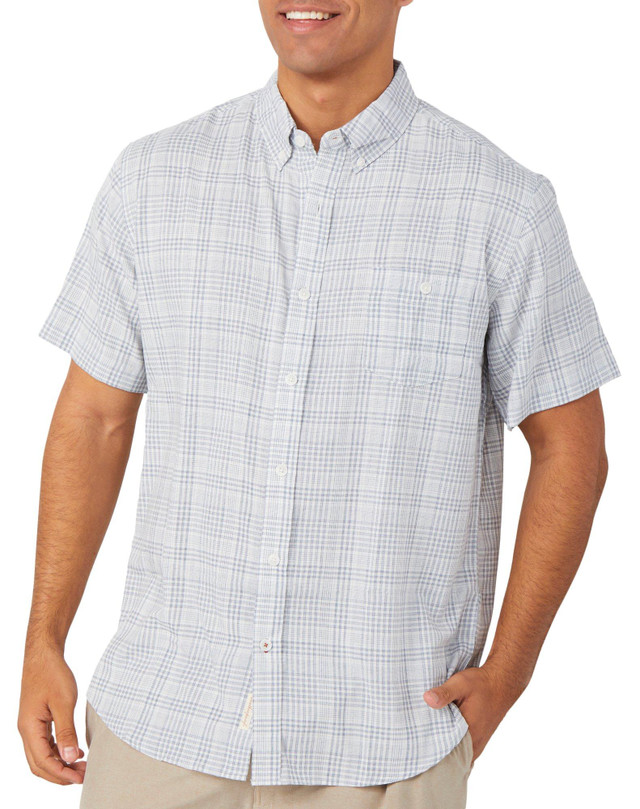 Stay cool and comfortable in this mens short sleeve performance shirt featuring a solid color and chest pocket. Crafted with breathable fabric for active days, this shirt offers a clean look with functional style. Ideal for casual outings, travel or outdoor activities.