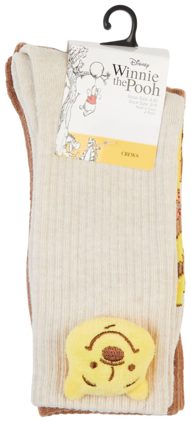 Add seasonal sweetness to fall wardrobes with the 2 Pk Harvest Plush Head Crew Socks. Featuring charming harvest designs and a plush Winnie the Pooh head on one pair, each sock brings warmth and playful detail to cooler days. Ideal for lounging or festive autumn outfits. Sock size 9-11, Shoe size 4-10.