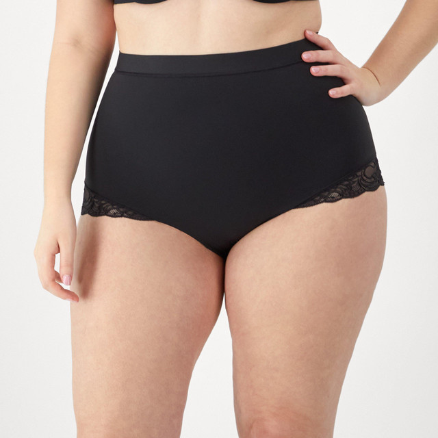 Target your tummy, waist, and rear all at once, with next-level shapewear from Maidenform. Its power mesh lining provides firm control and a smooth look. The Cool Comfort® fabric that wicks moisture away from your skin, keeps you cool and comfortable. The mid-rise silhouette has a SmartComfort no-roll, no-pinch waistband that stays smooth and flat. With pretty lace trim, these shaping briefs are so comfortable you may even forget youre wearing shapewear. Fabric 73% recycled nylon, 27% spandex.