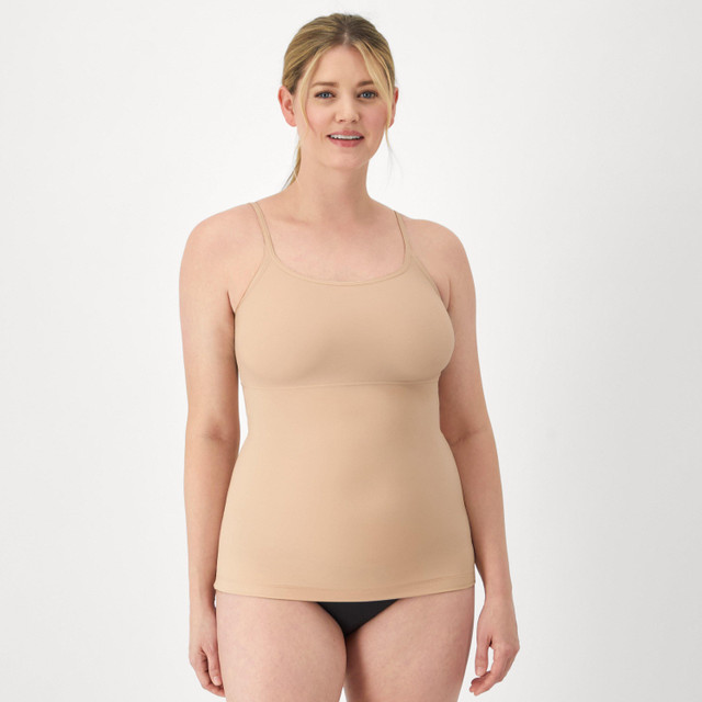 This shaping camisole top offers firm control from bust to hips in the longer length you love. Its meant to be seen but can be layered under fitted tops, jackets, and dresses. The silky microfiber fabric targets your tummy with a hidden panel under the bust that wraps around the midsection. Extra back smoothing helps manage bumps and bulges. The longer length provides additional smoothing of your waist and upper hips. All this control with barely-there, all day comfort.