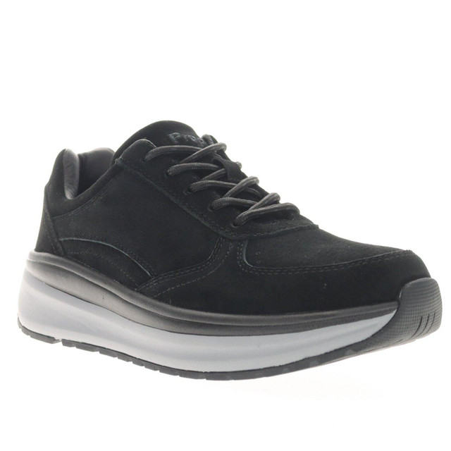 Ideal for those who require additional support for foot posture and balance, this walking shoe features a straight last design that can help correct overpronation and improve overall stability, allowing you to move with confidence. The firm heel counter ensures a snug fit, while the padded collar and tongue offers enhanced comfort where it counts. Experience exceptional cushioning with a removable Ortholite® X25 open cell foam insoles. Diabetic friendly, double insoles, Scotchgard.