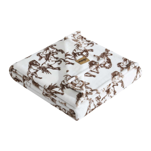 Experience cozy luxury with the Wrangler Mustangs Ultra Soft Plush Fleece Reversible Throw. Featuring printed sherpa reversing to solid corduroy, this 100% polyester throw offers unmatched softness and style. Finished with self-hem detailing and the iconic Wrangler logo patch, its lightweight, gift-ready, and perfect for travel or layering with Wrangler bedding. Fabrication 100& polyester. Measures 50 in. X 70 in.