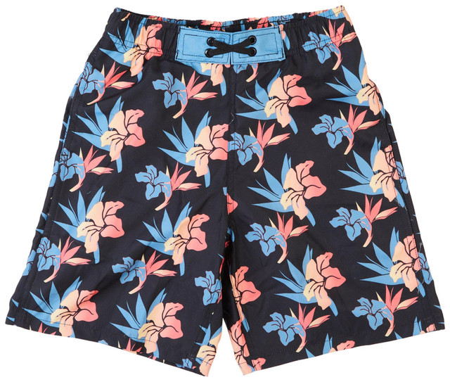 Wurl Big Boys Black with Floral Pattern Swim Shorts