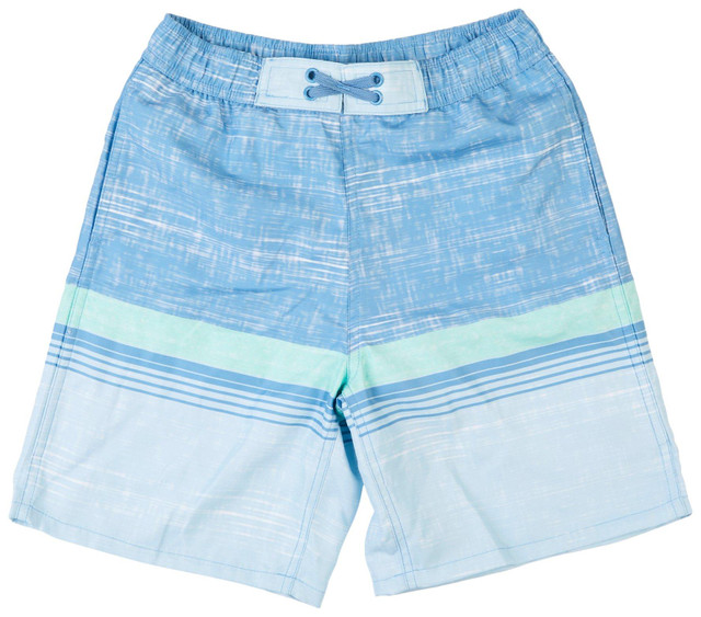Make a splash with the Boys striped swim Shorts! Crafted from 100% polyester, these lightweight and quick-drying shorts are designed for all-day comfort and durability. They bring a cool and trendy vibe to any water adventure. Perfect for beach outings, pool days, or summer play, these swim shorts combine practicality with effortless style. Essential for your little one's swimwear collection! Inseam measures approximately 7 in.