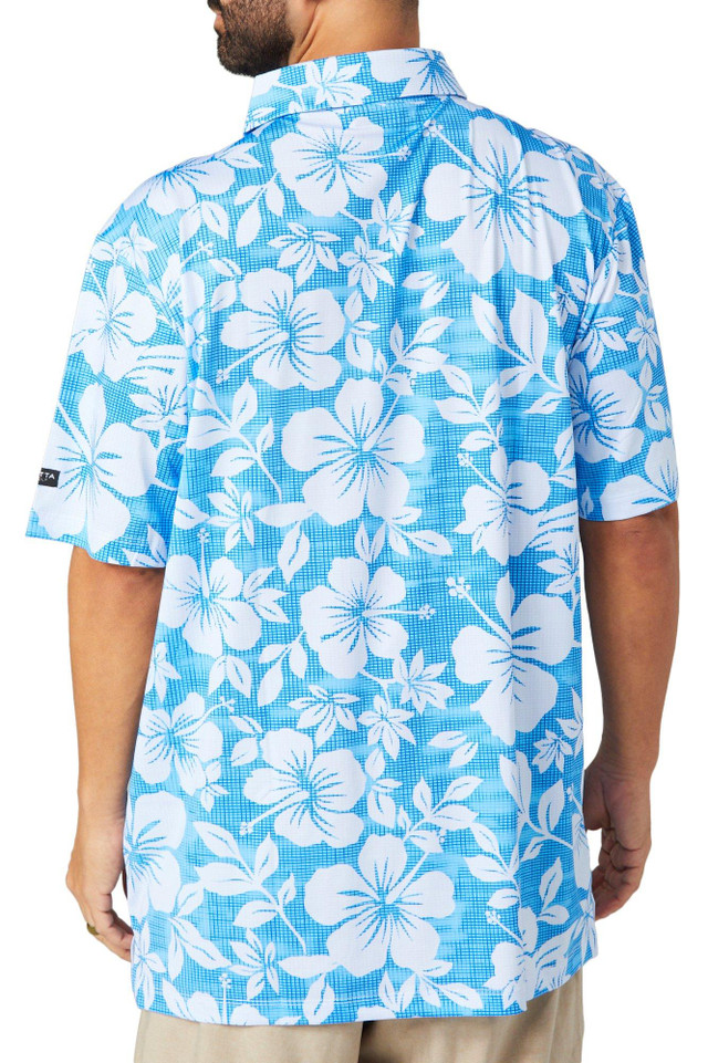 Bring tropical vibes to the course with the Men's Hibiscus Flower Golf Polo. Made from a smooth polyester-spandex blend, it features 4-way stretch, wrinkle resistance, moisture-wicking fabric, and UV 40 sun protection.
