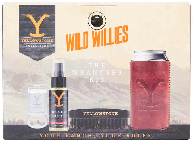 Upgrade your grooming routine with the Mens 4-Piece Wrangler Beard Set. Includes premium beard oil for conditioning, a boar bristle brush for styling, a leather can cooler for rugged charm, and a keychain bottle opener for convenience. Perfect for beard care and gifting.