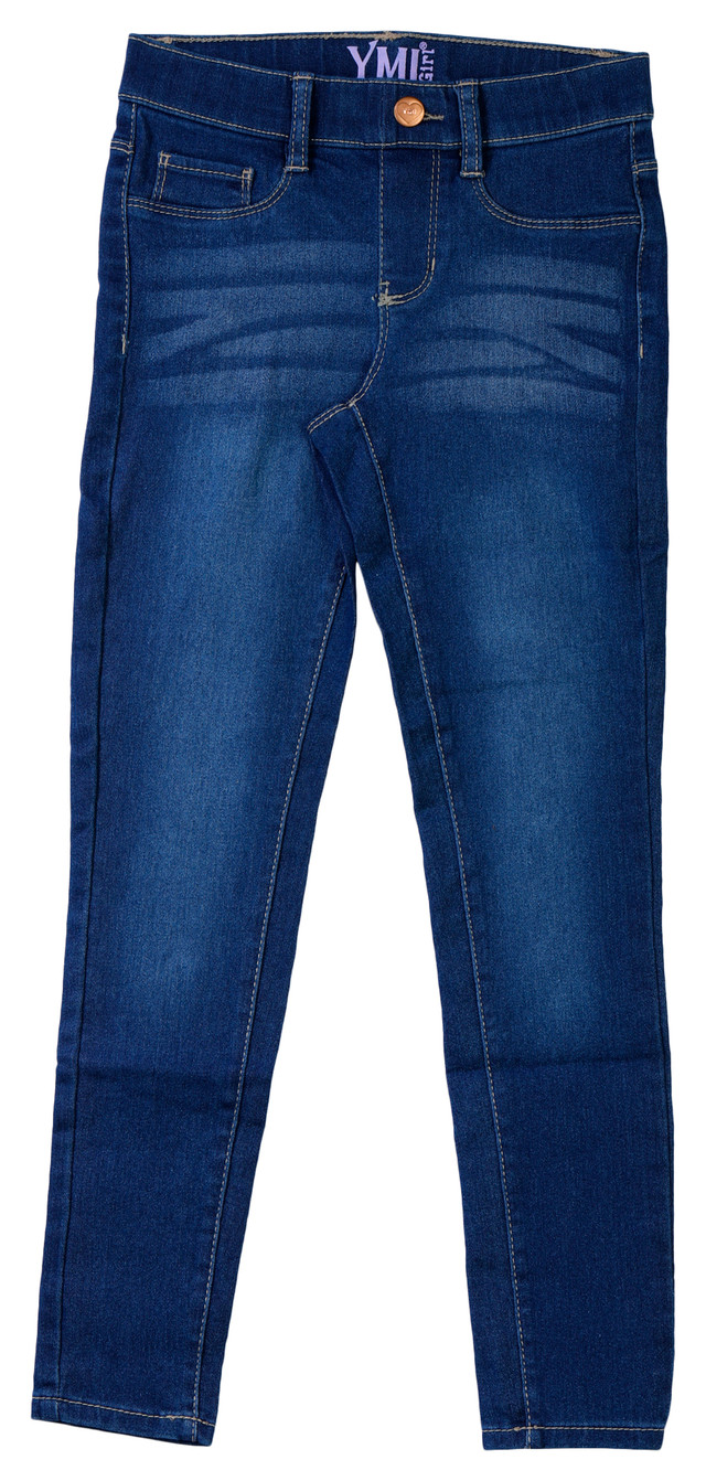 Elevate her everyday style with the Big Girls Skinny Dark Denim Jeans featuring a classic five pocket design and a dark wash with light fading for a versatile look. Stretch blend fabric offers comfort and ease of movement for school or weekend wear. Machine wash cold for lasting quality. Fabrication is 55% cotton 27% polyester 17% viscose 1% spandex.