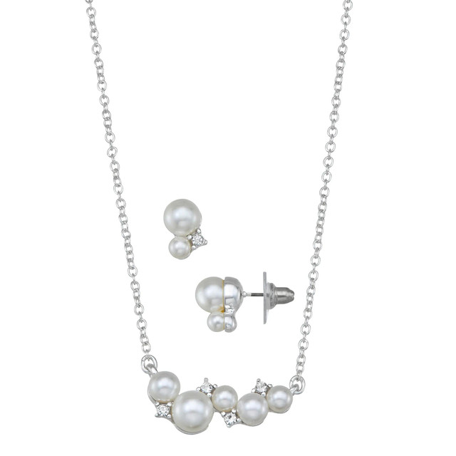 Add a touch of elegance with this chic jewelry set featuring lustrous faux pearls accented by sparkling crystals. Includes a delicate chain necklace and matching stud earringsperfect for weddings, formal events, or elevating everyday style.
