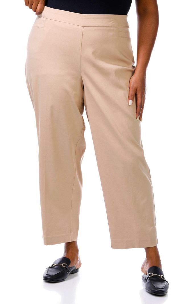 Step into comfort and style with the Plus 27 in Millenium Slim Ankle Pants. Crafted from a blend of nylon, rayon, and spandex, these capris offer a comfortable fit and a stylish solid color. The pull-on waistband ensures ease of wear, while the 27-inch inseam and slim ankle fit provides a flattering silhouette. The faux pocket look adds a touch of sophistication, making these pants perfect for any casual or dressy occasion.