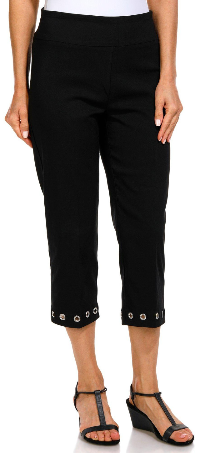These Women's 22-inch Grommet Capris offer a stylish and comfortable fit, featuring bold grommet detailing on the sides for a trendy touch. The pull-on design ensures easy wear, making them perfect for casual outings or relaxed weekends. Versatile and chic, ideal for any wardrobe.