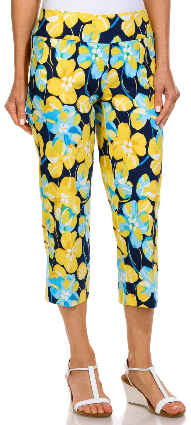 Introducing these Mill Capris, where style meets functionality. These capris feature a vibrant print pattern that adds a pop of color to your workout wardrobe. The standout feature is the innovative mesh tummy panel, designed to provide extra support and a flattering fit. Perfect for any activity, from yoga to running errands, the Mill Capris offer comfort and confidence in every move. Inseam measures approximately 23 in. Fabrication is 76% rayon, 21% nylon, 3% spandex.