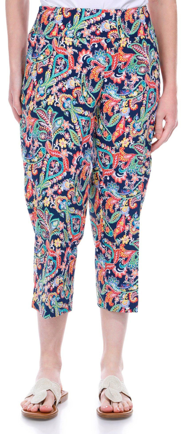 Introducing these Mill Capris, where style meets functionality. These capris feature a vibrant print pattern that adds a pop of color to your workout wardrobe. The standout feature is the innovative mesh tummy panel, designed to provide extra support and a flattering fit. Perfect for any activity, from yoga to running errands, the Mill Capris offer comfort and confidence in every move. Inseam measures approximately 23 in. Fabrication is 76% rayon, 21% nylon, 3% spandex.