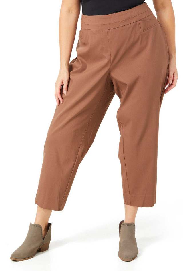 Enjoy effortless style with these Plus Pull-On Ankle Pants. Featuring a solid color and a smooth pull-on waistband, they offer a flattering fit with faux front pockets for a clean, streamlined look. Perfect for work or everyday wear.
