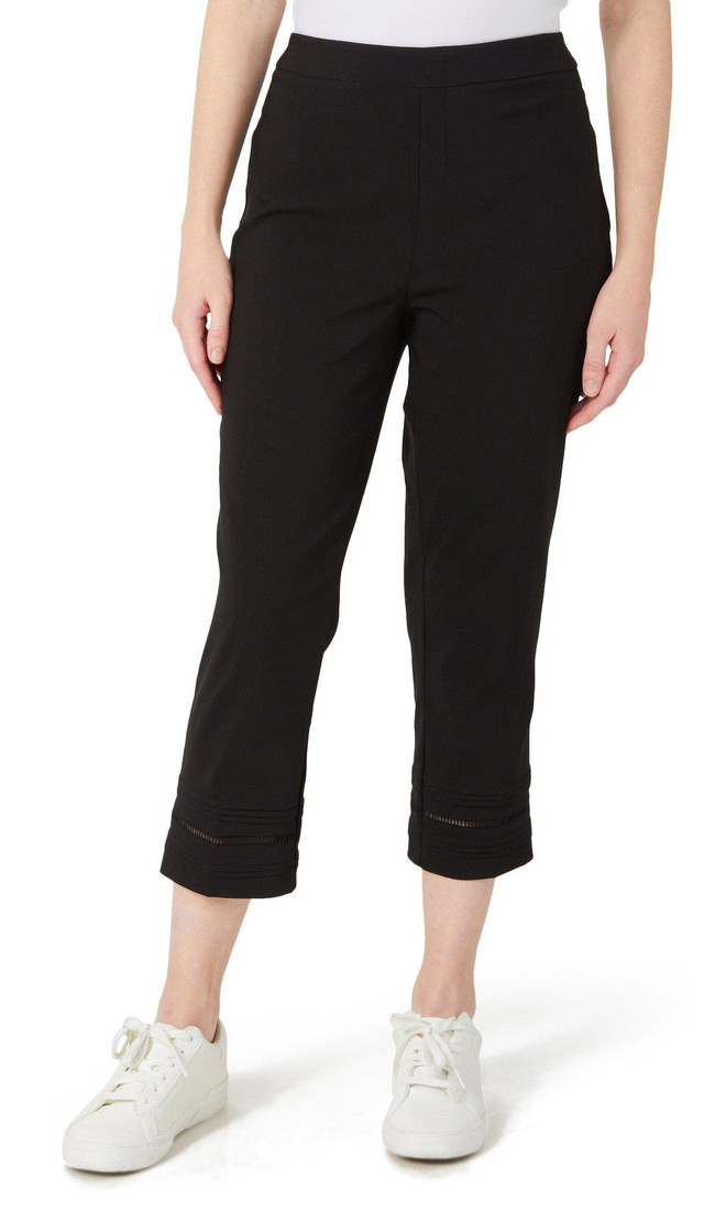 These womens capris feature a solid color with a 23 inch inseam and circle hem for a touch of elegance. Made of nylon rayon and spandex they offer comfort and stretch making them a great choice for work or casual wear.
