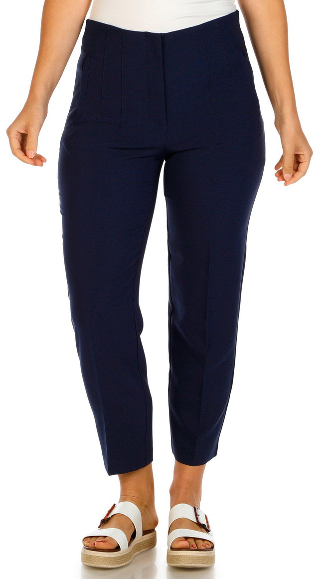 These womens pants feature a solid color with a 28 inch inseam and pleated front design for a polished look. Made of polyester and spandex they offer a body conforming fit with wrinkle resistance faux pockets and a button fly zip closure for all day comfort and style.