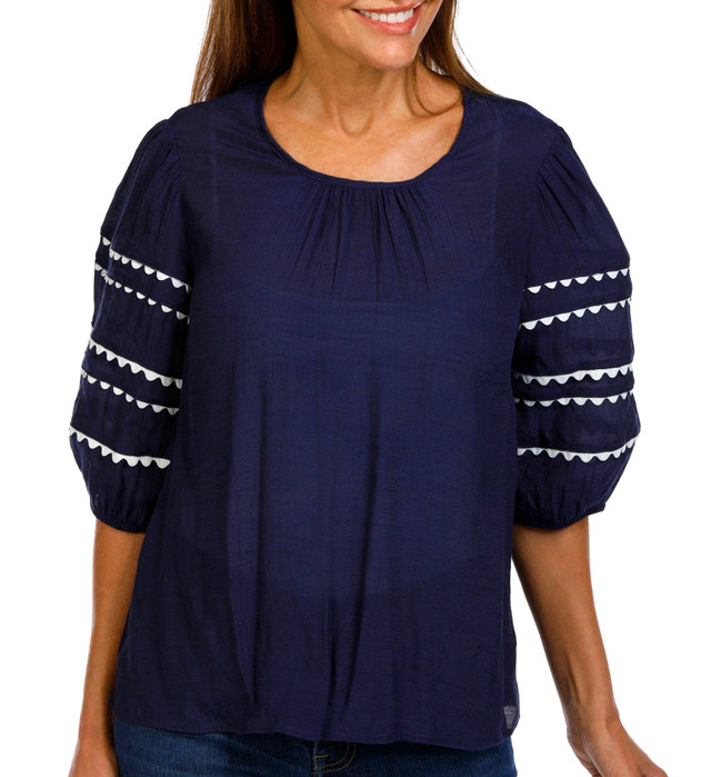 Zac & Rachel Womens Embellished Sleeve Solid Slub Top