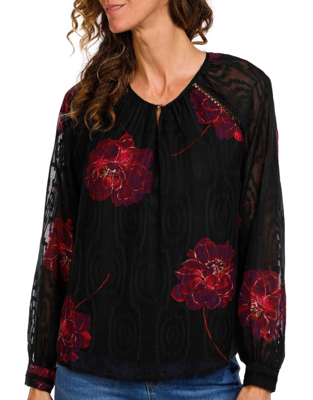 Zac & Rachel Womens Long Sleeve Floral Clipped Chiffon Top
