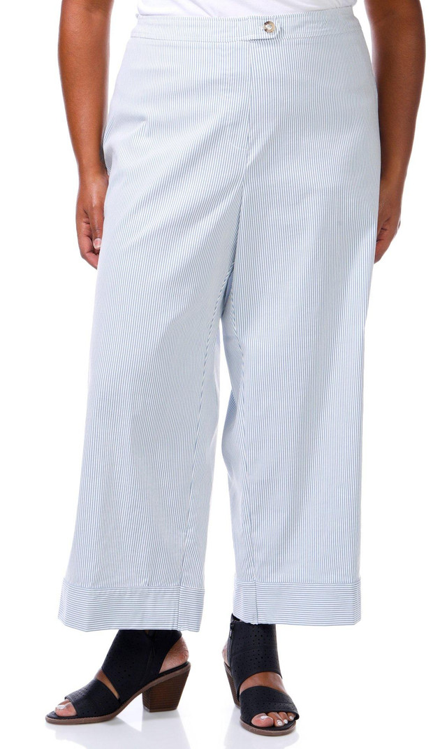 Introducing our Womens Striped Wide Leg Pants, designed for a fun and modern look. These pants feature a stylish striped print and a convenient pull-on waistband for easy wear. Perfect for any occasion. Crafted from a blend of rayon, nylon, and spandex, they offer a comfortable and flexible fit. Elevate your wardrobe with these versatile and chic pants. Fabrication is 73% rayon, 23% nylon, 4% spandex.