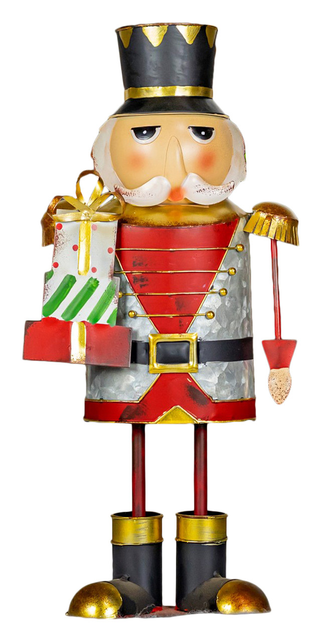 Add festive charm indoors or out with the 17 in Metal Nutcracker. Crafted from 100% quality iron and powder coated for durability, this freestanding figure features a hand-painted, weather-resistant finish with a distressed look for vintage appeal. A bold holiday accent for any space.