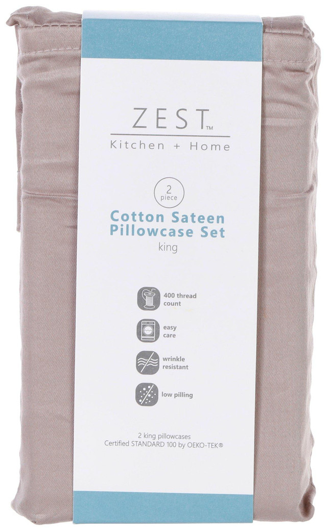 ZEST Kitchen + Home 2 Pk Cotton Sateen Standard Pilowcase