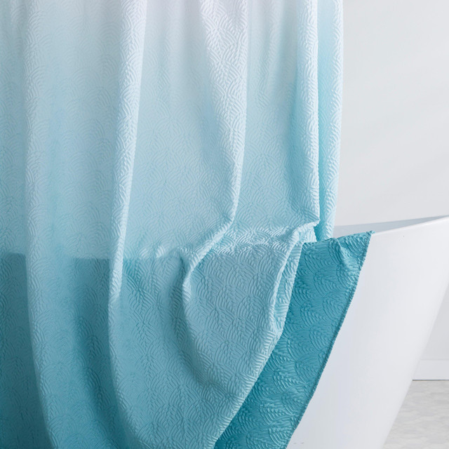 Transform your bathroom into a serene escape with this Shower Curtain, featuring a graceful ombre effect and embossed detailing. The subtle gradient flows effortlessly, adding depth and elegance to your space. Durable and stylish, its the perfect blend of texture and tone for a modern, spa-like feel. Measures 70 in x 72 in.
