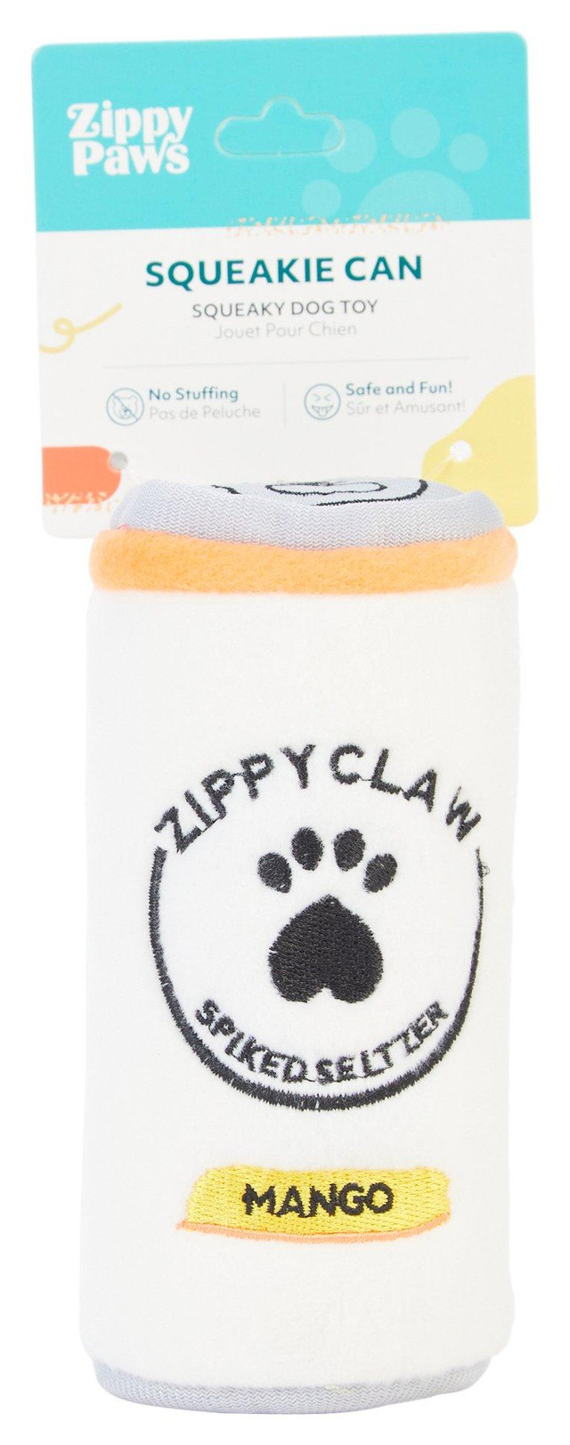 Add playful variety to toy time with the 5.5 in Zippy Claw Squeakie Can Dog Toy featuring a no stuffing design and built in squeaker for safe and engaging fun. Shaped like a can for a whimsical touch during light play sessions. Fabrication is 100% polyester. Measures approximately 5.5 in x 2.75 in diameter.
